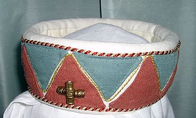 mit Kinnbinde und Schleier